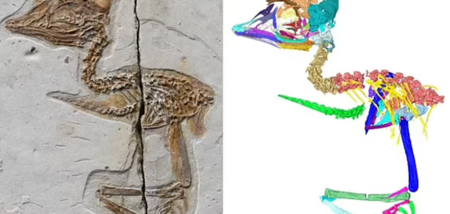 Các nhà nghiên cứu đang tiếp tục phân tích bộ xương chim được tìm thấy trong hồ nước nông tại hệ tầng Jiufotang ở tỉnh Liêu Ninh, Trung Quốc. Con chim này nằm lọt thỏm trong lòng bàn tay người. Hộp sọ của nó chỉ rộng gần 2 cm, mang theo các đặc điểm của cả chim và khủng long.