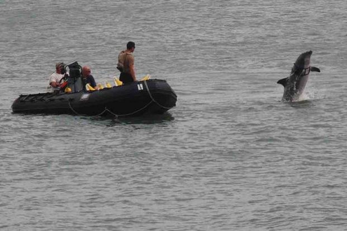 Nếu phát hiện có mìn hoặc vũ khí khác, cá heo quay trở lại nhận một chiếc phao từ người phụ trách để đánh dấu vị trí của thiết bị trên mặt nước. Các tàu đi qua khu vực sẽ tránh những điểm đánh dấu này trong khi các thợ lặn xử lý vật liệu nổ, vô hiệu hóa mối đe dọa bên dưới.