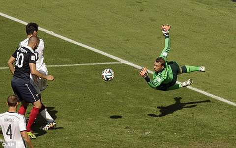 34' Không vào! Suýt chút nữa Pháp có bàn gỡ. Đường mở bóng dài từ sân nhà lên cho Griezmann đã được tiền vệ Real Sociedad kiến tạo chuẩn xác cho Valbuena. Tiếc là ở cú dứt điểm của tiền vệ Marseille, và của cả Benzema sau đó đều không vượt qua được Neuer.