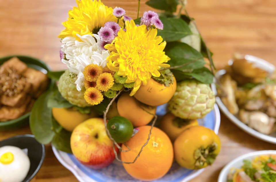 Mâm quả cúng rằm tháng 7 (Ảnh: Hòa Phạm)
