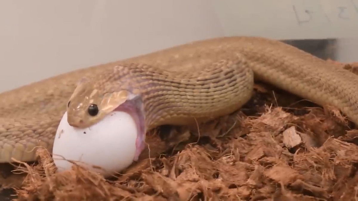 Rắn ăn trứng Gans sở hữu cơ thể nhỏ bé nhưng có thể há miệng cực kỳ rộng, giúp chúng nuốt chửng những quả trứng chim lớn hình cầu.