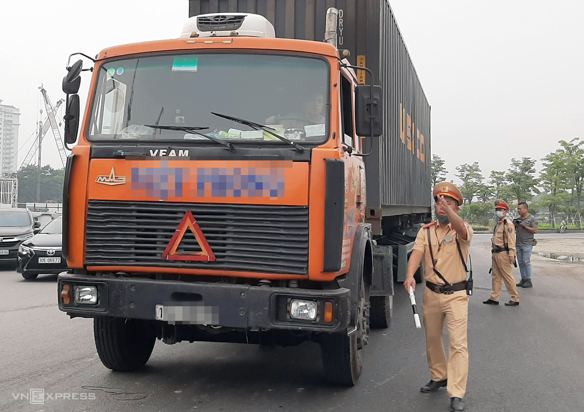 CSGT Hà Nội làm nhiệm vụ trên đường Phạm Văn Đồng hôm 28/7. (Ảnh: Bá Đô).