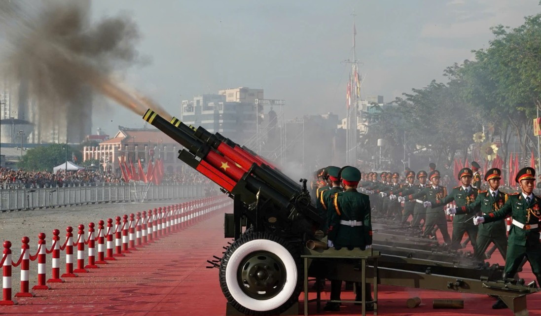 Dàn đại bác khai hỏa tại lễ tổng duyệt diễu binh, diễu hành sáng 27/4.