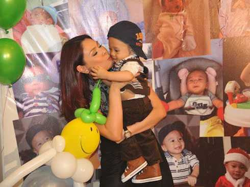 Nữ diễn viên cá tính cho biết, cha của con trai vẫn ở cạnh chăm sóc cho hai mẹ con cô.