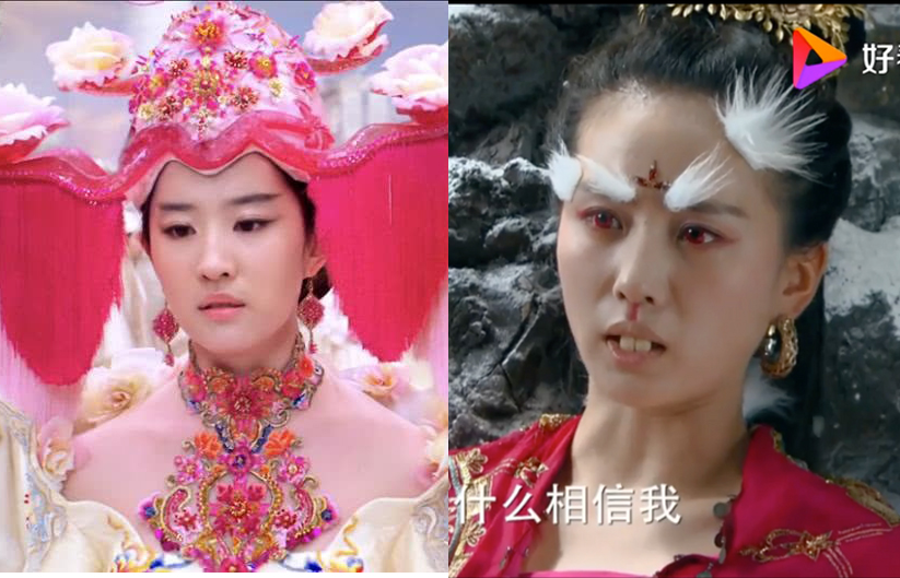 Trong các bộ phim cổ trang, nhân vật chính diện thường được tạo hình xinh đẹp lung linh, còn nhân vật phản diện kỳ dị thường bị bộ phận hóa trang, phục trang bôi xấu không thương tiếc. Ngay cả “thần tiên tỷ tỷ” như Lưu Diệc Phi, Lưu Thi Thi cũng không thoát được “kiếp nạn” này. Gạt bỏ hình tượng xinh đẹp, kiêu sa, nhiều mỹ nhân Trung Quốc bỗng trở nên xấu hoắc trên màn ảnh.