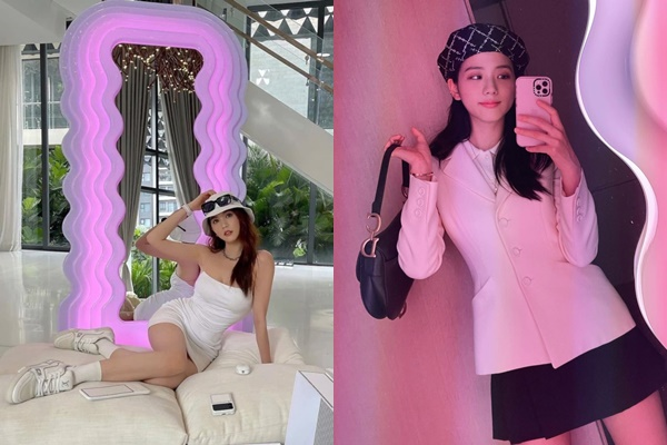 Thời gian gần đây, nhiều ngôi sao liên tục check-in trước chiếc gương có hình dáng lạ và nhiều màu sắc. Được biết, đây là thiết kế Ultrafragola của Poltronova có giá 13.000 USD (gần 300 triệu đồng). Cũng giống như nhiều món hàng xu hướng khác, loại gương này bị làm giả không ít với giá rẻ bèo, bán tràn lan trên thị trường.