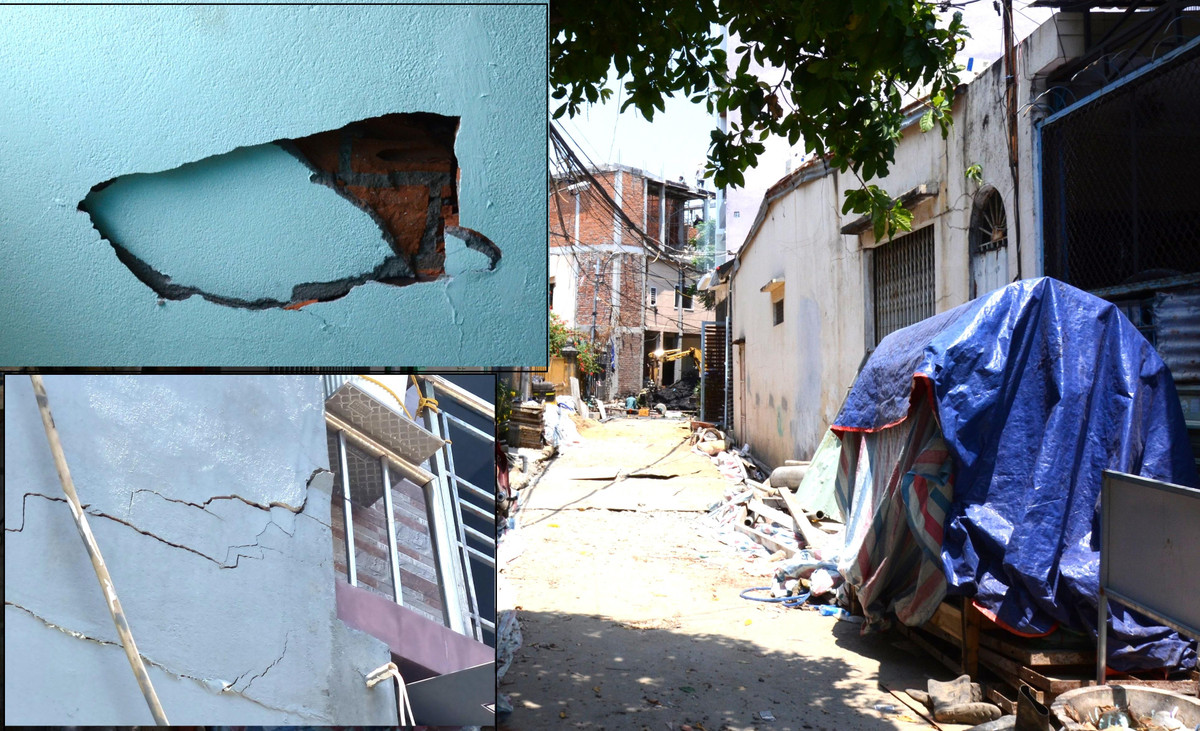 “Những ngày đầu xuất hiện các vết nứt nhỏ nhưng sau đó ngày càng rộng thêm. Đến giờ thì cả nhà nhìn đâu cũng thấy nứt. Ban ngày thì bụi, tối đến hồ khô, gạch, xi măng rớt nghe đùng đùng. Chúng tôi đang phải sống trong nơm nớp lo sợ vì nhà có thể sập bất cứ lúc nào”, chị Trang bức xúc.