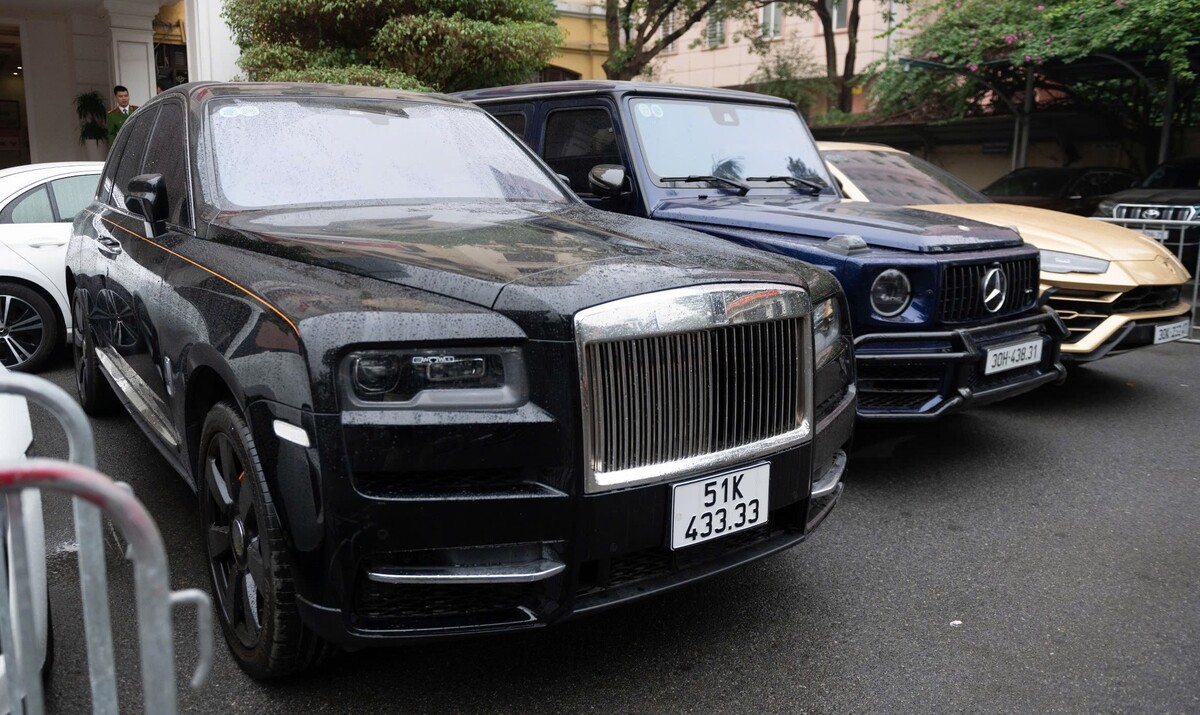Chiếc Rolls-Royce Cullinan biển số 51K-433.33 mà Phó Đức Nam thường xuyên chụp ảnh cùng và đăng tải lên mạng xã hội để khoe mẽ về sự giàu có. Giá thị trường siêu xe này khoảng 35-40 tỷ đồng, tùy phiên bản, cấu hình. Bên cạnh là ô tô Mercedes G63 có giá cả chục tỷ đồng.
