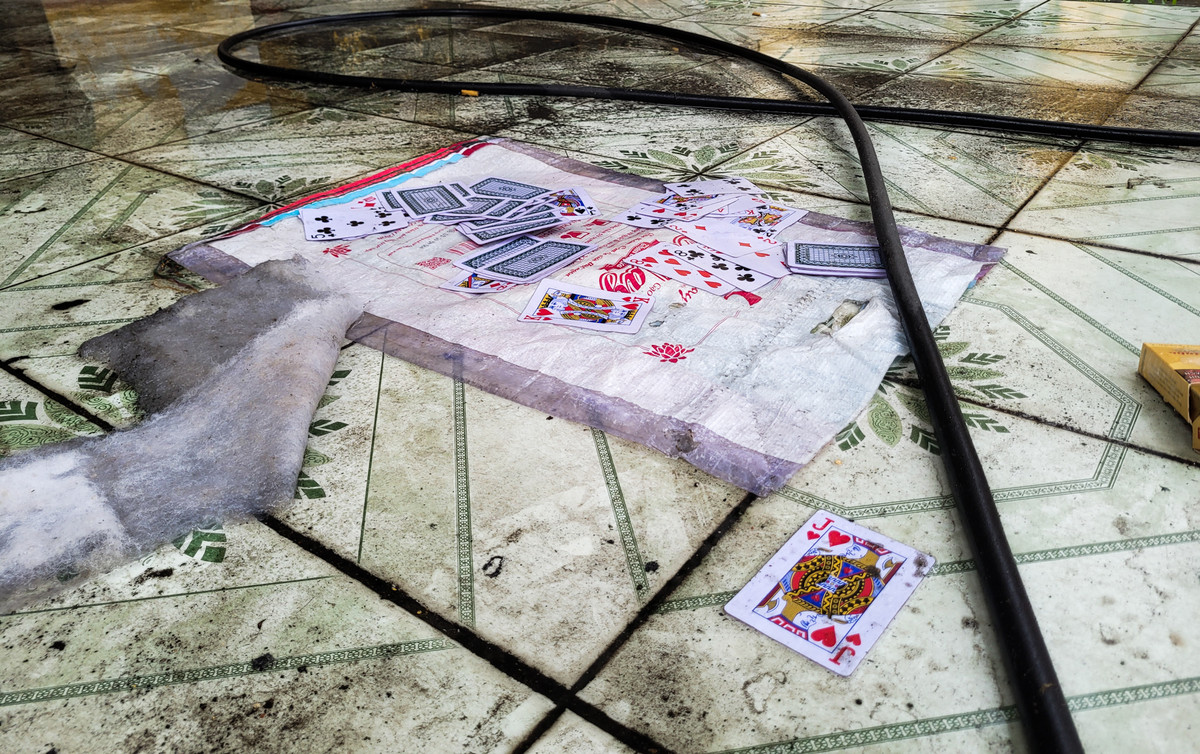 Tại đây, phóng viên cũng ghi nhận tình trạng lá bài, vỏ thuốc lá chất đầy sàn nhà không ai dọn dẹp.