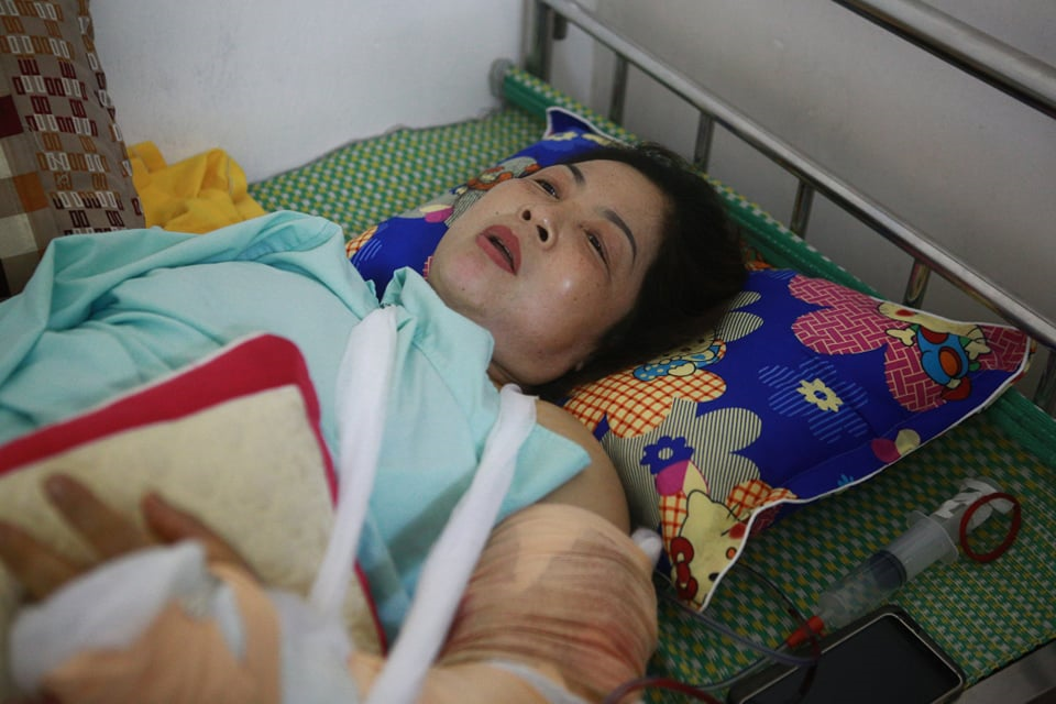 Bà Hoàng Thị Thảo, một trong 18 nạn nhân bị thương sau vụ lốc xoáy chiều tối 10/6.