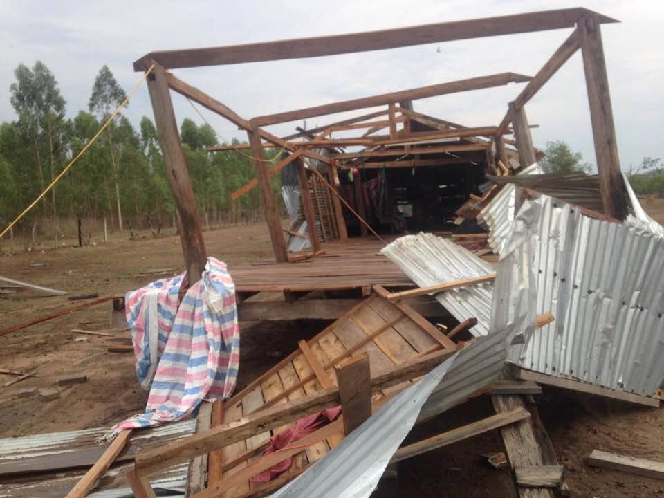Nhà của người dân bị lốc xoáy cuốn sập.