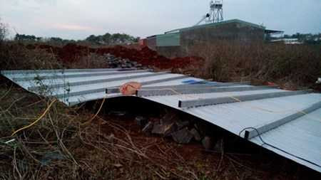 | Lốc xoáy giật tung mái tôn, hất văng hai quân nhân đang sửa chữa |