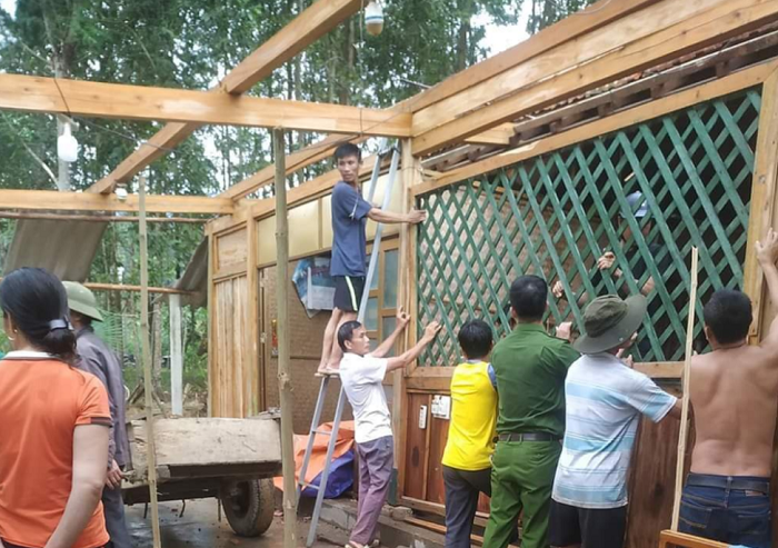 Ngay sau khi trận lốc xoáy đi qua, chính quyền địa phương, lực lượng bộ đội, công an đến từng gia đình để hỗ trợ dọn dẹp, lợp lại mái giúp người dân.