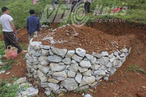 | Cảnh chuyển đá xếp mộ của người Mông. Ảnh: Dương Phạm |
