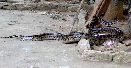 Ông Ru giật nảy mình, ngã ngửa ra sau. Ông tưởng con trăn sẽ tấn công mình, song, con trăn lại không có ý định làm hại đến ông thủ từ. Nó chỉ lắc lư mãi ở chỗ ấy, cho đến khi nhiều người tụ tập quá, nó thản nhiên trườn hẳn vào nội điện, rồi nằm nguyên tại đó.