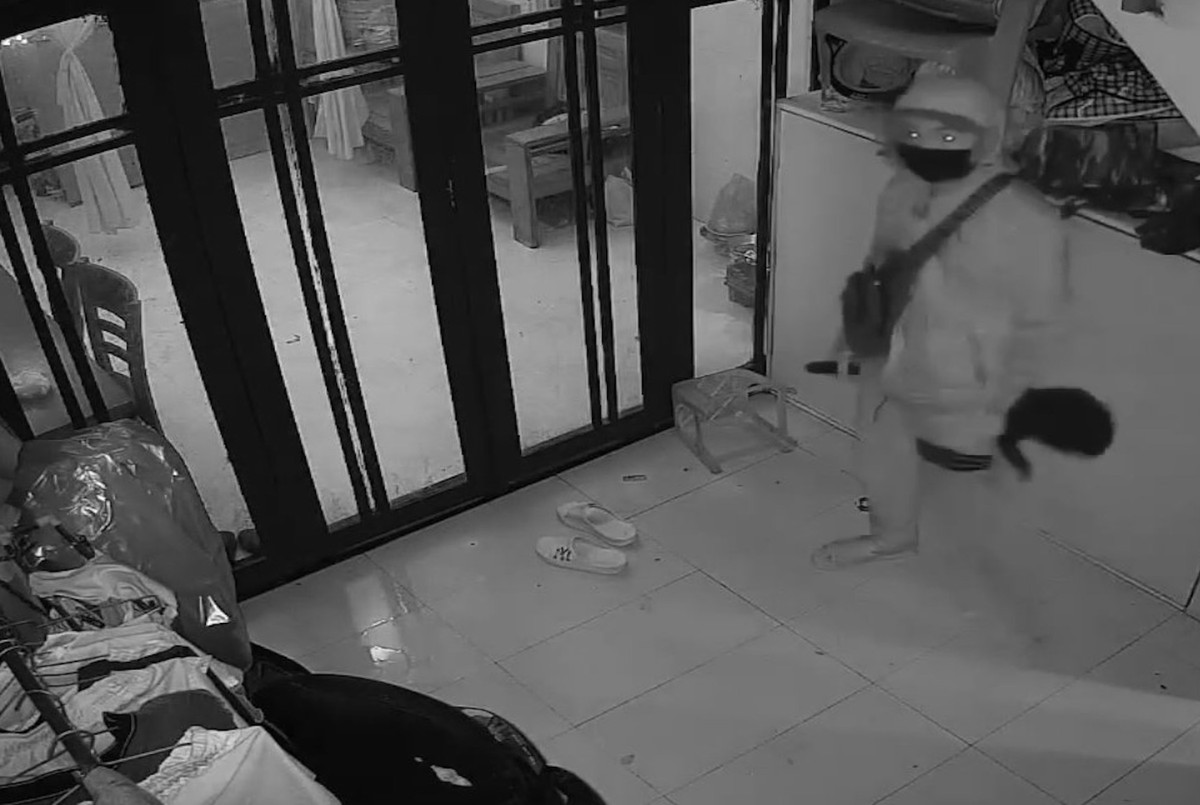 Camera an ninh ghi lại quá trình đột nhập nhà dân thực hiện hành vi trộm cắp của Hiếu và Dự. (Ảnh: Công Quang)