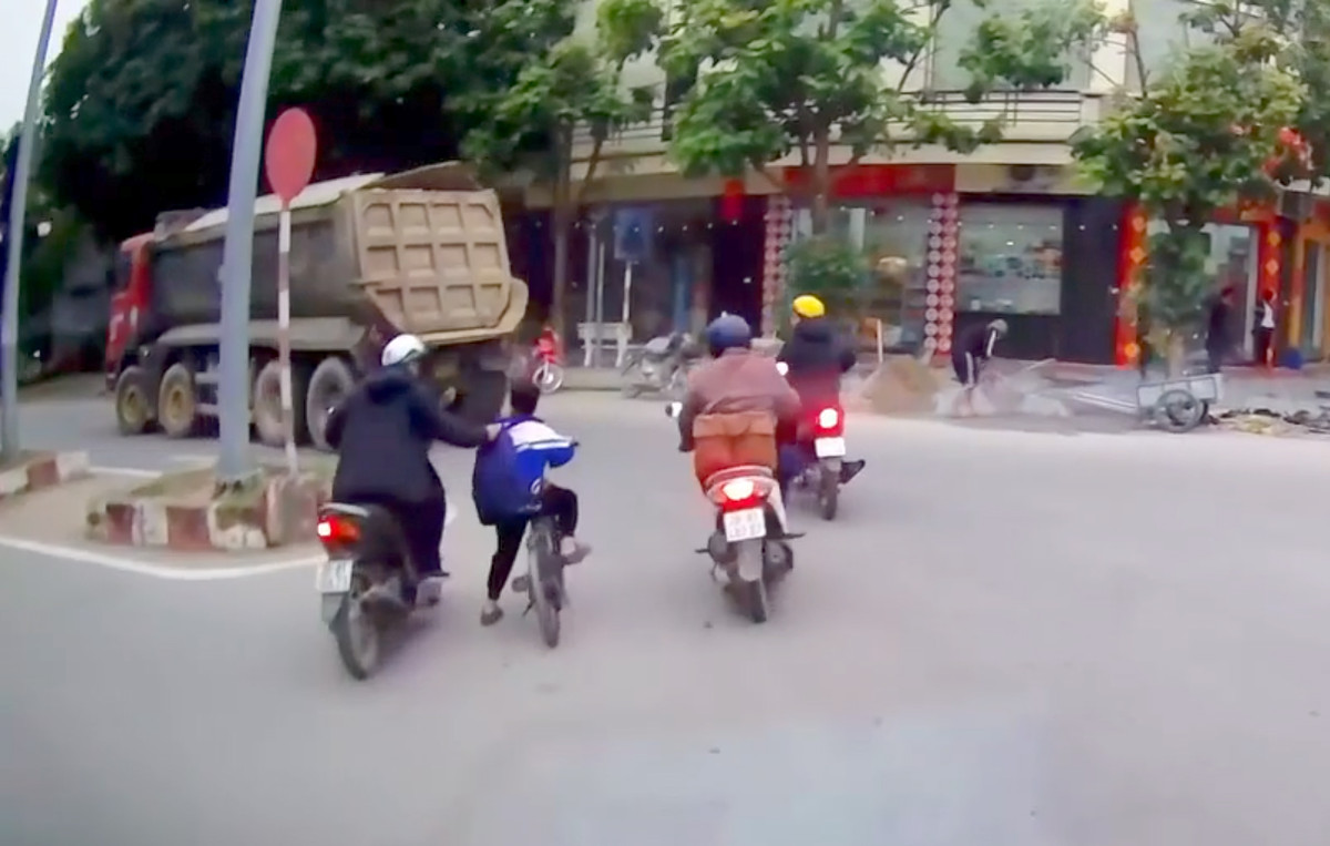 Nhiều ngày qua, clip ghi lại khoảnh khắc người đàn ông kéo cháu bé đi xe đạp khỏi điểm mù xe tải đang được cộng đồng mạng chia sẻ với cơn mưa lời khen dành cho hành động này.
