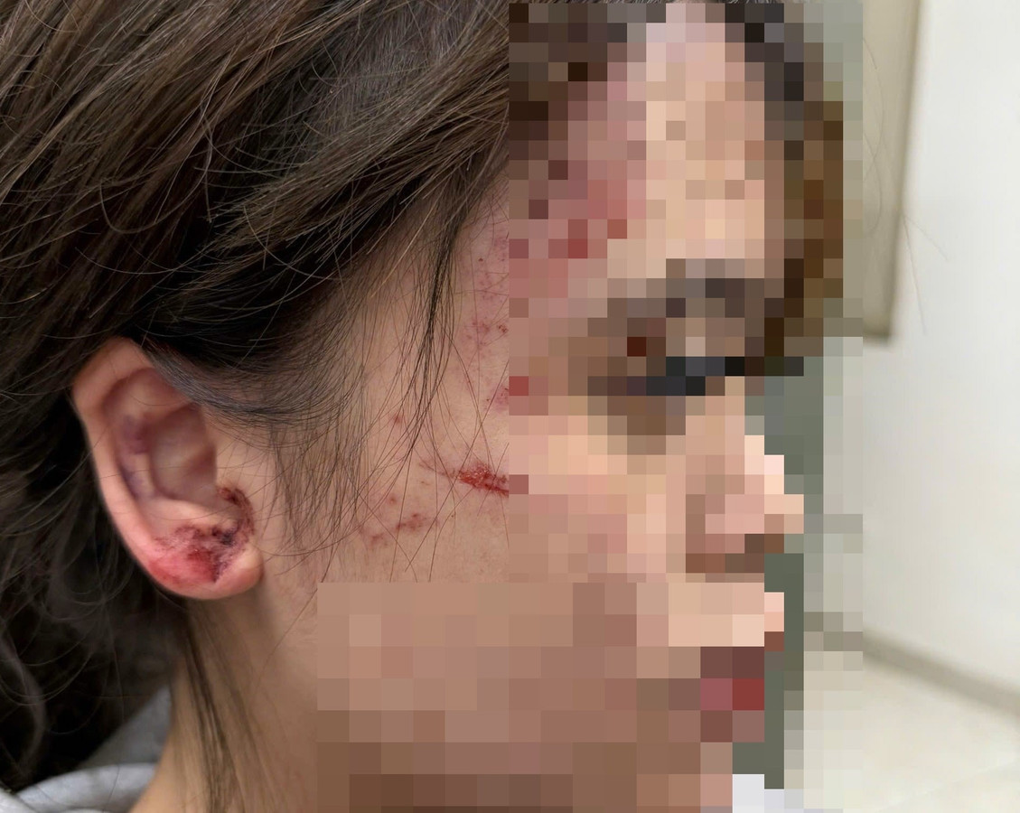 Đêm 15/2, người mẹ không thấy con gái về nhà nên gọi điện. Lúc này, con gái thông báo bị rách tai, chảy nhiều máu và nói mẹ đến Bệnh viện Thanh Nhàn. Chị vội chạy đến viện và hốt hoảng khi thấy con gái tóc bù xù, máu mồm chảy, mặt xước và rách.