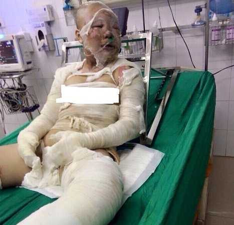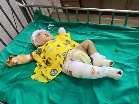 Những ngày này với cháu Giang có lẽ là quãng thời gian đau đớn nhất của cuộc đời khi vết bỏng đã làm cho cơ thể cháu bị biến dạng.