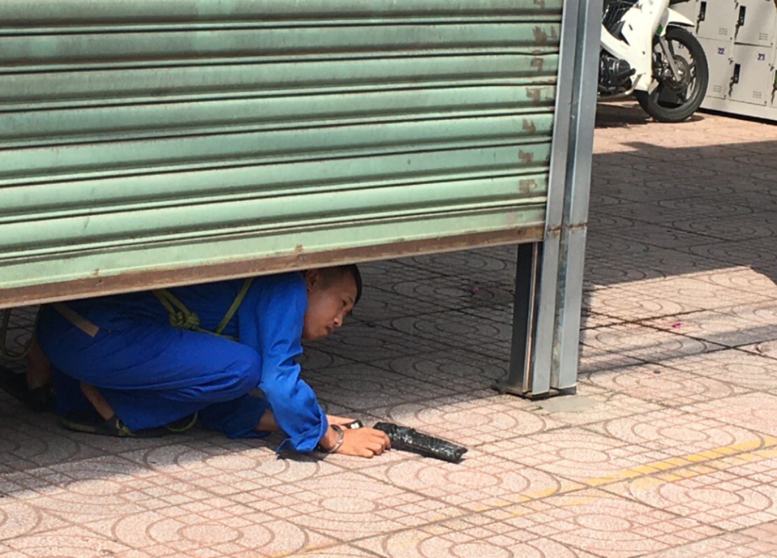 Đêm hôm gây án, Thành bắt xe ôm đến gần nhà sách, rồi xuống xe, một mình xông vào nhà sách đe dọa, uy hiếp cướp tiền.