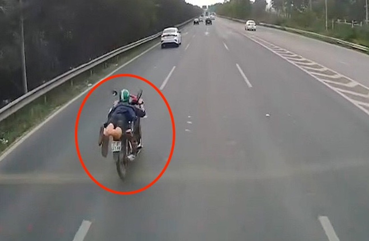 Trước đó, mạng xã hội đăng tải clip ghi lại cảnh người đàn ông nằm rạp trên yên xe máy lao với tốc độ cao trên cao tốc Đại lộ Thăng Long.