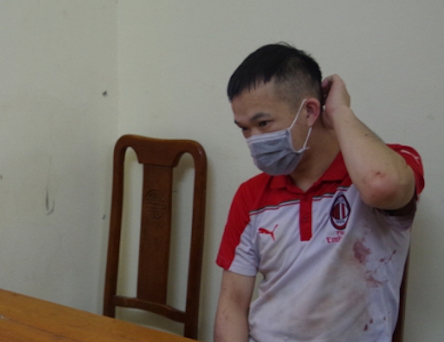 Nghi can Lành Đức Giang tại cơ quan công an.