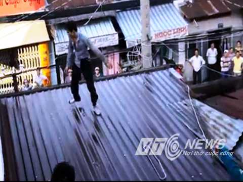 | Sau khi tưới xăng thiêu cháy người yêu tên Đỗ Đình Nam leo lên mái nhà hòng trốn thoát nhưng bị công an bắt giữ. (Ảnh cắt từ clip) |