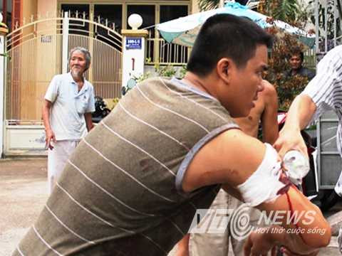 | Anh Nguyễn Hữu Tùng bị thương ở tay khi ngăn cản hung thủ gây án |