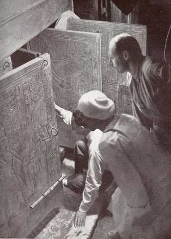 Carter phát hiện một phiến đất sét trong căn phòng nhỏ phía trước ngôi mộ. Vài ngày sau đó, một thành viên trong nhóm nghiên cứu giải mã đoạn chữ tượng hình trên phiến đất có nội dung "Cái chết sẽ đến với bất kỳ kẻ nào dám làm nhiễu loạn sự bình yên của Pharaoh".