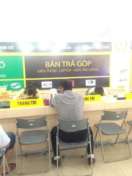 Tại cửa hàng FPT Shop trên đường Nguyễn Trãi (quận Thanh Xuân– Hà Nội), sau khi lựa chọn chiếc điện thoại HTC với mức giá niêm yết 14.990.000 đồng, chúng tôi được các nhân viên ở đây tư vấn có thể mua hàng trả góp. Nhân viên của FPT Shop giới thiệu tôi đến gặp một nhân viên tư vấn, giao dịch tại quầy giao dịch của TNHH thương mại ACS Việt Nam (gọi tắt là công ty ACS) đặt ngay tại cửa hàng này để nghe hướng dẫn làm thủ tục vay trả góp.