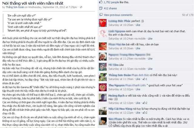 Bài viết của một 'đàn anh' đang khiến các tân sinh viên phát sốt.