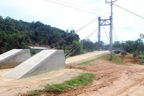 | Con đường nằm trong quy hoạch xây dựng dẫn tới cầu treo Khe Tây chỉ được làm sẵn một đoạn, còn lại toàn là đồi núi. |