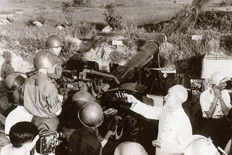 Chủ tịch Hồ Chí Minh thăm các chiến sỹ lực lượng phòng không bảo vệ Thủ đô ngày 25/9/1966. (Ảnh: TTXVN).