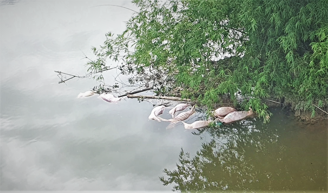 Trước đó, sáng cùng ngày (3/6), một số người dân đi qua cầu Khe Trươi (một nhánh của sông Ngàn Trươi, thuộc TDP 1, thị trấn Vũ Quang giáp với xã Thọ Điền) phát hiện nhiều con lợn chết nổi trên mặt nước.