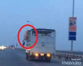 Chú lợn nhảy xuống từ chiếc xe tải đang chạy trên cầu Thăng Long (Hà Nội), tuy sống sót nhưng cuộc đào tẩu của chú lợn cuối cùng cũng thất bại khi tài xế xe tải tấp vào lề, xuống bắt gọn lên xe.