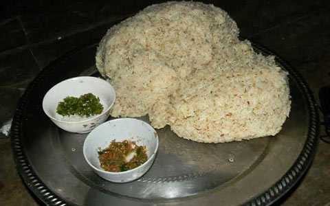 Khách ngồi chưa ấm chỗ thì đã thấy một người phụ nữ đến và nhẹ nhàng đặt một chiếc mâm xuống giữa nhà, trong mâm có một chõ xôi mới đồ và một ít nước chấm được nấu từ cá và ếch. Ngay lúc đó, chủ nhà cũng vào lấy một ít nước suối để khách rửa tay sau đó vào ăn xôi.