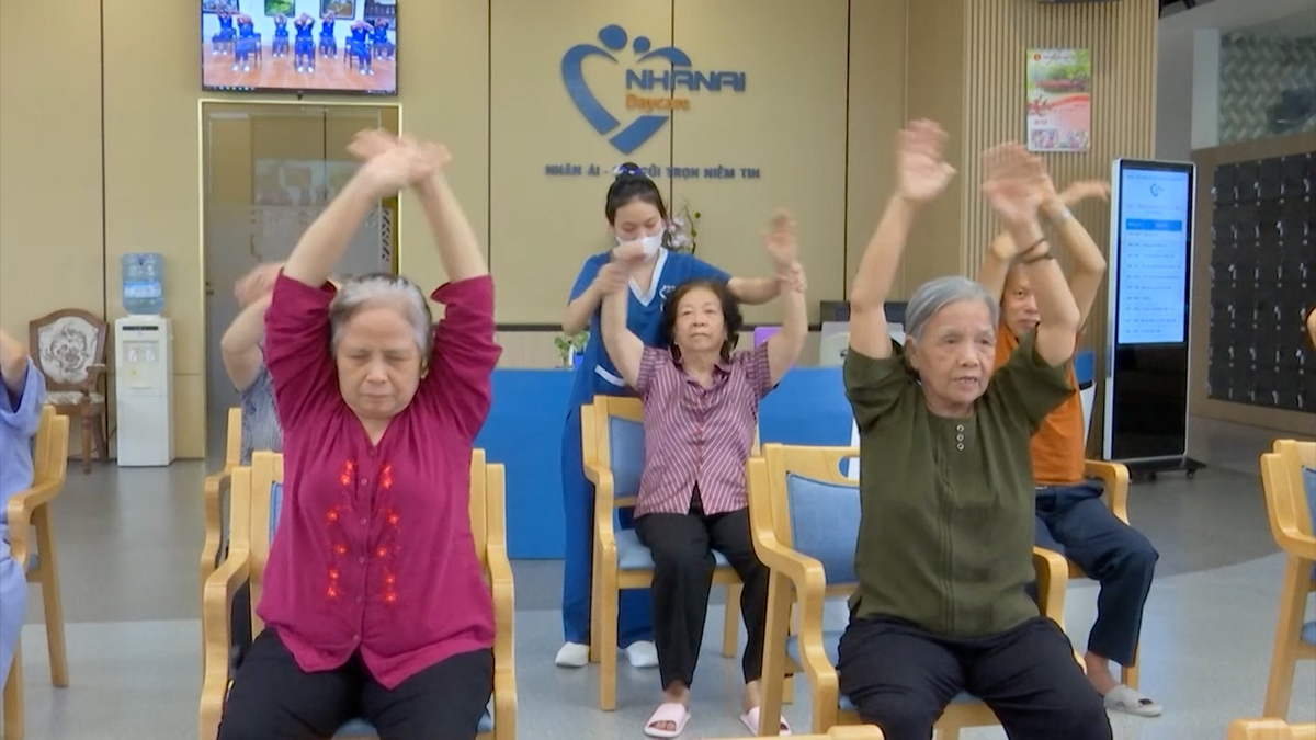 Lớp học bán trú dành cho người cao tuổi là mô hình mới ở Hà Nội, đến đây mọi người được luyện tập sức khỏe theo nhạc, vui chơi và rèn luyện sức khỏe.