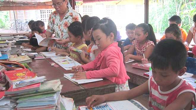 Chuyện thiếu sách khiến việc học của các em thêm khó khăn, cô Hoàng vận động các em lớp trước sử dụng sách cẩn thận, gom lại để dành cho lớp sau.