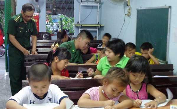 Đại úy Vũ Trường Tính nói: “Toàn khu có khoảng 50 em, trong đó nhiều em không biết chữ, nhiều em chỉ học lớp một, hai rồi bỏ. Bộ đội mở lớp, vận động các em đi học, đã đọc, viết thành thạo thì dù nửa chừng các em bỏ học, các em cũng không đến mức u mê kiến thức, nhưng có hai em đã đọc, viết bập bẹ, cha mẹ bắt nghỉ đi bán vé số, phụ hồ thì nguy cơ mù chữ trở lại rất cao.