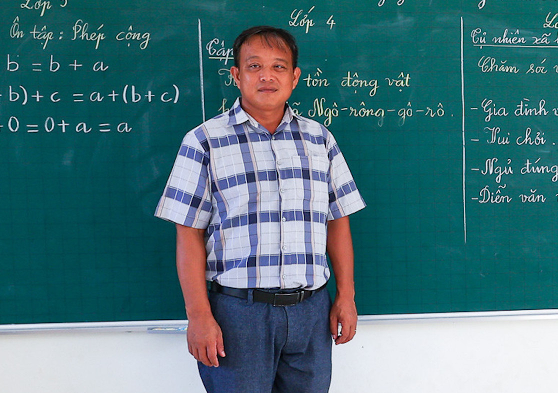 Lớp lắp ghép 5 trình độ học sinh từ lớp 1 đến lớp 5. Trên bảng, những nội dung học từng lớp được ngăn cách bởi vạch phấn kẻ dọc. Với việc dạy tiểu học với các khối lớp khác nhau, một ngày học, thầy Thịnh chủ yếu tập trung dạy Toán, tiếng Việt.