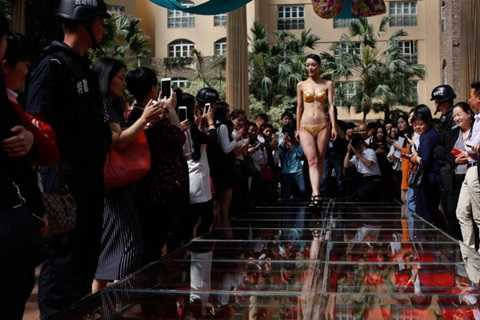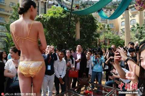 Đặc biệt hơn, người mẫu còn mặc các bộ bikini bằng vàng ròng. Các bộ bikini này trị giá hàng chục triệu nhân dân tệ.