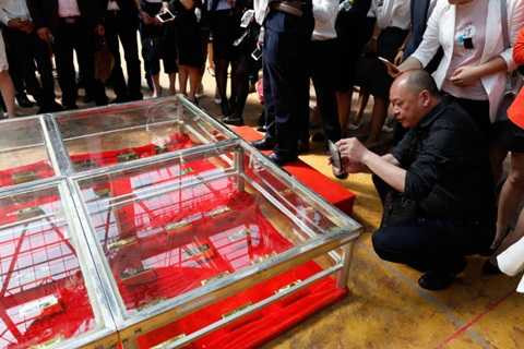 | ...trình diễn trên con đường phía trên ốp kính dưới là các thỏi vàng |