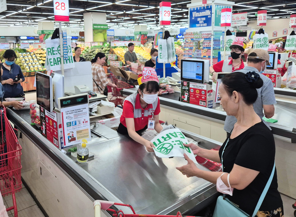 LOTTE Mart khuyến khích khách hàng sử dụng túi môi trường khi mua sắm.