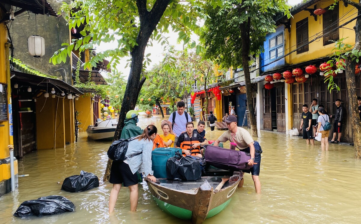 Nhiều du khách đang lưu trú ở các khách sạn thuộc khu vực thấp trũng trong phố cổ cũng được sơ tán bằng thuyền nhỏ để di chuyển đến nơi an toàn.
