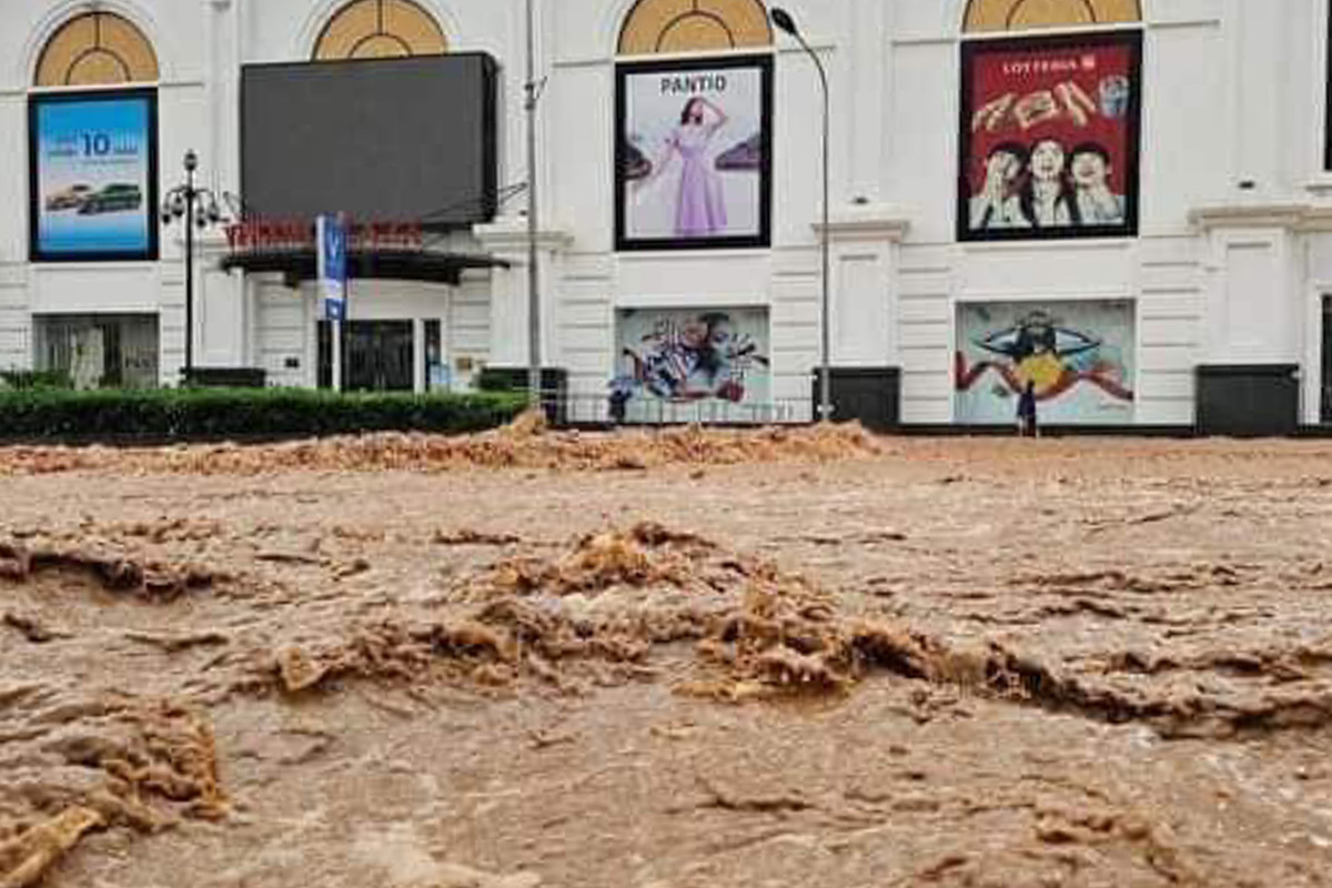 Nước cuồn cuộn đổ các khu vực trũng, thấp ở trung tâm TP Sơn La.
