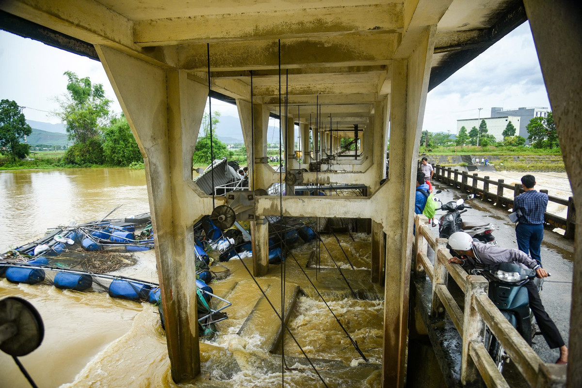 Theo Bộ CHQS TP Đà Nẵng, tại hiện trường có khoảng 40 lồng bè bị mắc kẹt ngay tại chân đập, chắn ngang gần một nửa mặt đập, che kín 6 khoang xả nước với chiều dài hơn 35m.
