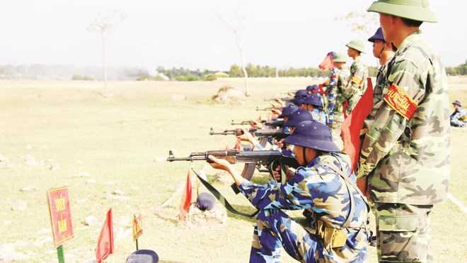 | Đội hình thực hành quỳ bắn bài 1 súng tiểu liên AK của chiến sĩ mới đợt 1/2014 ở Lữ đoàn 101 Hải quân đánh bộ. |