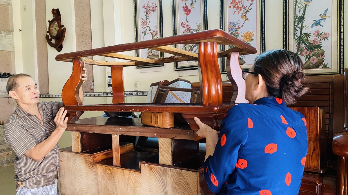 Đồ đạc còn dính bùn đất chưa kịp rửa sau đợt lũ lịch sử thì nay lại tiếp tục được kê lên cao tránh lụt.