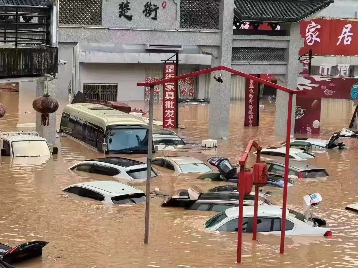 Một phần ba thị trấn cổ Bình Giang và một nửa thị trấn mới đang chìm trong nước. Tờ Hồ Nam Nhật báo đưa tin, nước lũ ở một số khu vực được cho là cao tới 3m.