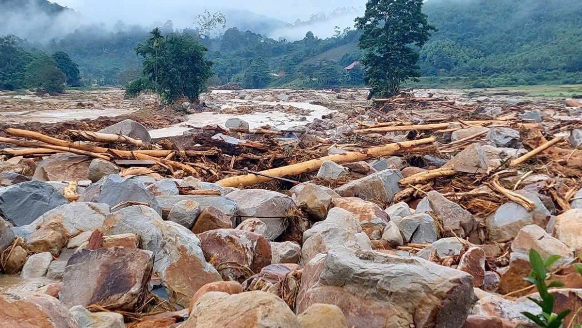 Một nhà dân bị nước lũ, đất đá cuốn trôi hết tài sản.